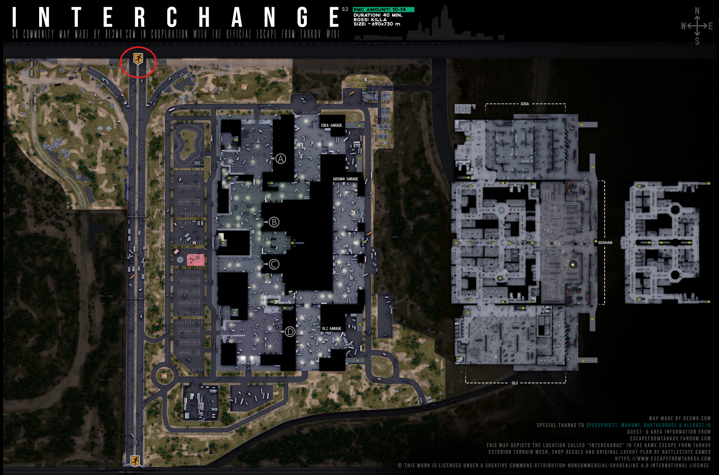 타르코프 시내에서 7시 방향 제일 끝부분에 인터체인지로 이동하는 트랜짓이 있습니다.