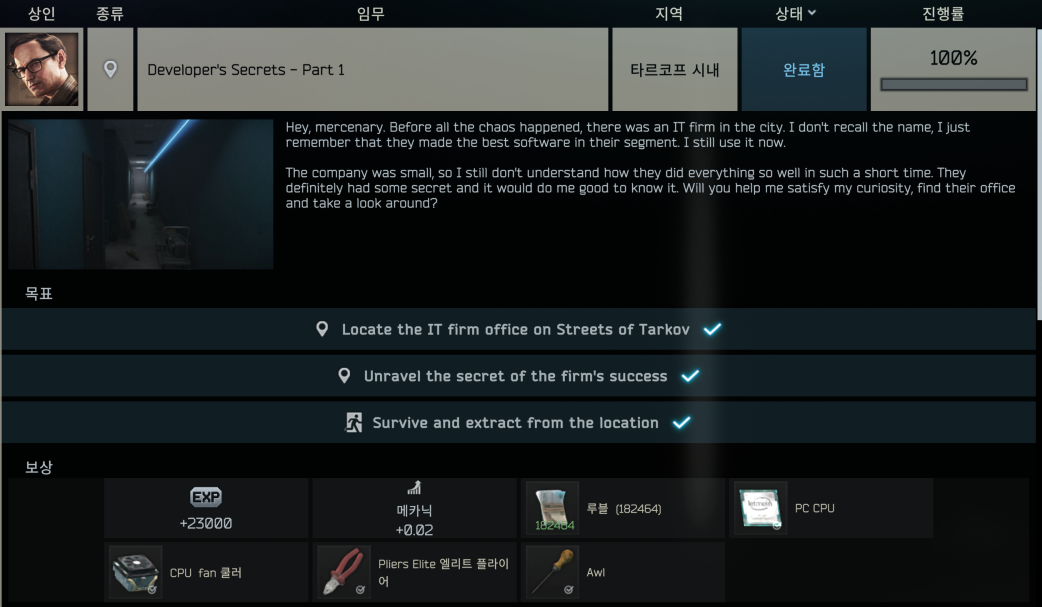 타르코프 퀘스트 - Developer's Secrets - Part 1 본문