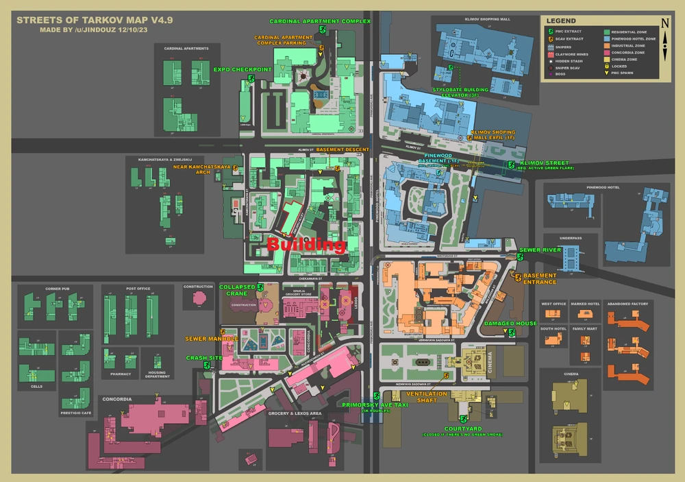 아래 지도에 표시된 건물에서 특정 위치(협상실, "Negotiation" room key 필요)에 도달 후 살아서 탈출하면 됩니다.