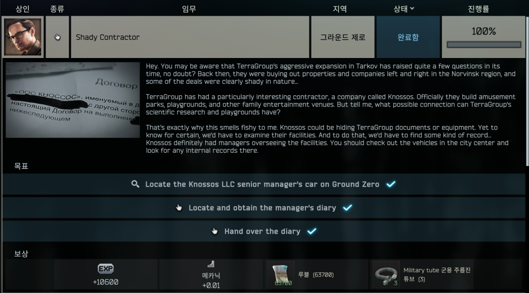 타르코프 [미궁 퀘스트] Shady Contractor 본문