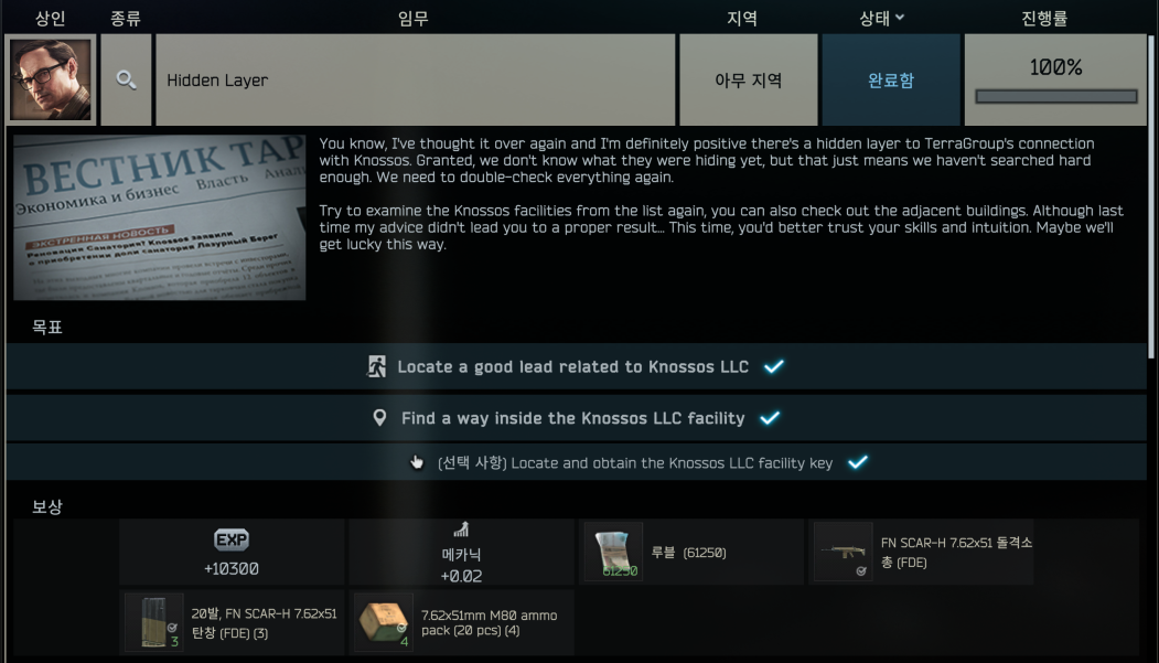 | 타르코프 [미궁 퀘스트] Needle in a Haystack (6) | 2025.03.28 |